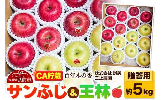 - 【26年4月発送】りんご 【CA貯蔵】贈答用 百年木の香 三上農園 サンふじ&王林 約5kg (14~20玉程度)【先行受付】 青森 果物 フルーツ 林檎 リンゴ くだもの 予約
