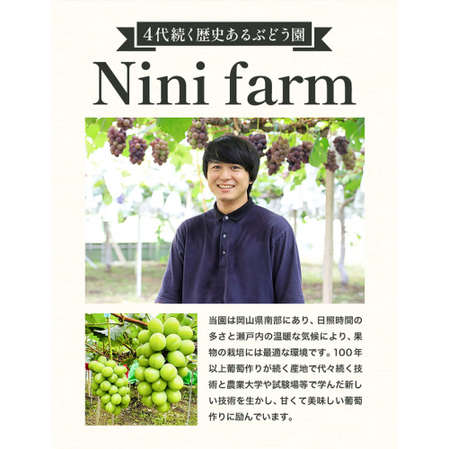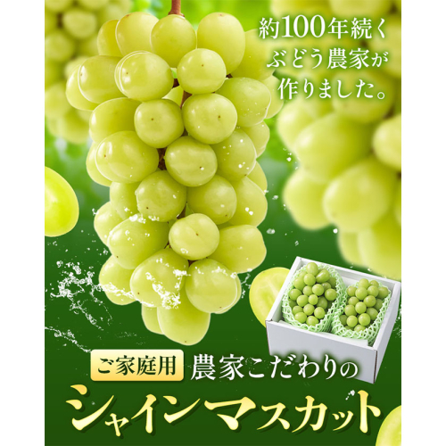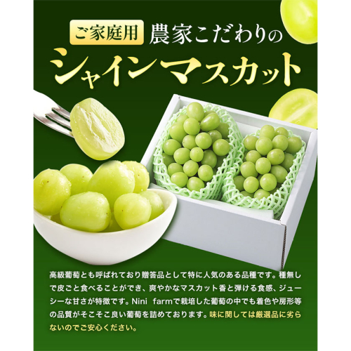 【2026年先行予約】ぶどう シャインマスカット ご家庭用 農家こだわりの シャインマスカット 2房 3~5房 約1kg ~ 2kg 《2026年9月中旬-10月下旬頃出荷(土日祝除く)》 Nini farm マスカット 送料無料 岡山県 浅口市 フルーツ 果物 贈り物 国産 岡山県産 くだもの 果物 青果物