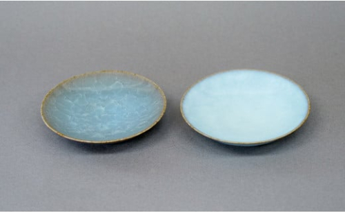 - 有田焼 貫入月白小皿 2色セット【梶原大敬 茂正工房】器 うつわ 食器 皿 取皿 小皿 菓子皿 2枚 セット ペア 青磁 貫入 青 夏 上品 シンプル 作家 ろくろ 電子レンジ対応 A18-237