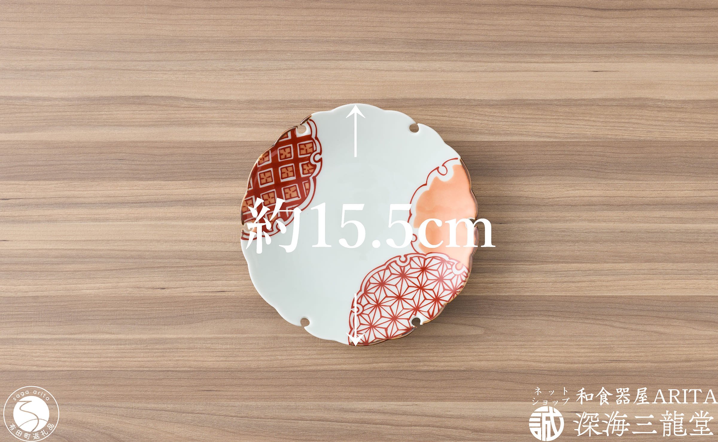 染付と赤絵雪輪皿 麻の葉 2枚 セット 深海三龍堂 有田焼 和食器 和風 小皿 銘々皿 取り皿 七宝 染付 青 赤 A24-91