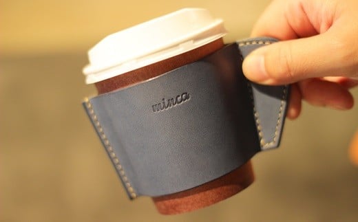 - 【minca】栃木レザーのカップスリーブSサイズ 自宅、オフィス、キャンプシーンでのカフェタイムに/ブルー 660【日用品 人気 おすすめ 】