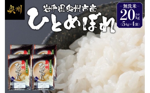 奥州市産 ひとめぼれ 無洗米 令和7年産 20kg お米 ご飯 精米 節水 米 【第三ライスセンター】 [BC002]