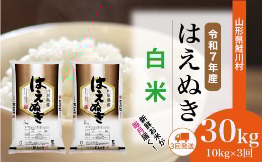 <令和7年産米> はえぬき 【白米】 定期便 30kg (10kg×1ヶ月間隔で3回お届け)<配送時期選べます> 山形県鮭川村