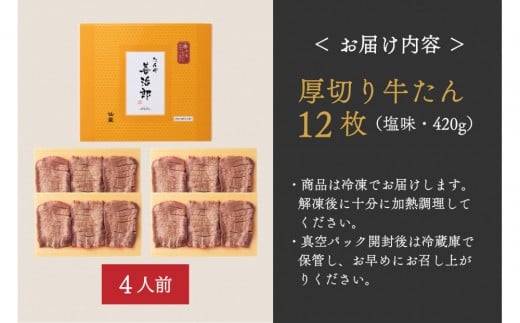 - たんや善治郎 厚切り牛たん12枚 塩味【肉 牛肉 タン 仙台 名物 グルメ 厚切り 焼肉 プレミアム バーベキュー ジューシー 柔らかい 食品 人気 ギフト 風味豊か 旨味 冷凍保存 焼き方簡単 食べ比べ 高級 贅沢】