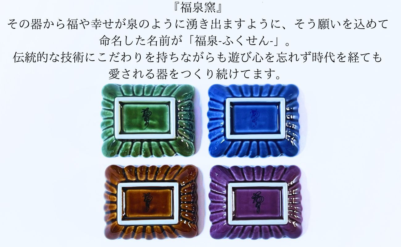 有田焼 菊形角小皿 4色セット(ルリ釉・飴釉・織部釉・紫釉)【福泉窯 x ARITAYAKI-STORE】食器 器 うつわ 皿 和食器 ギフト 手仕事 A24-108