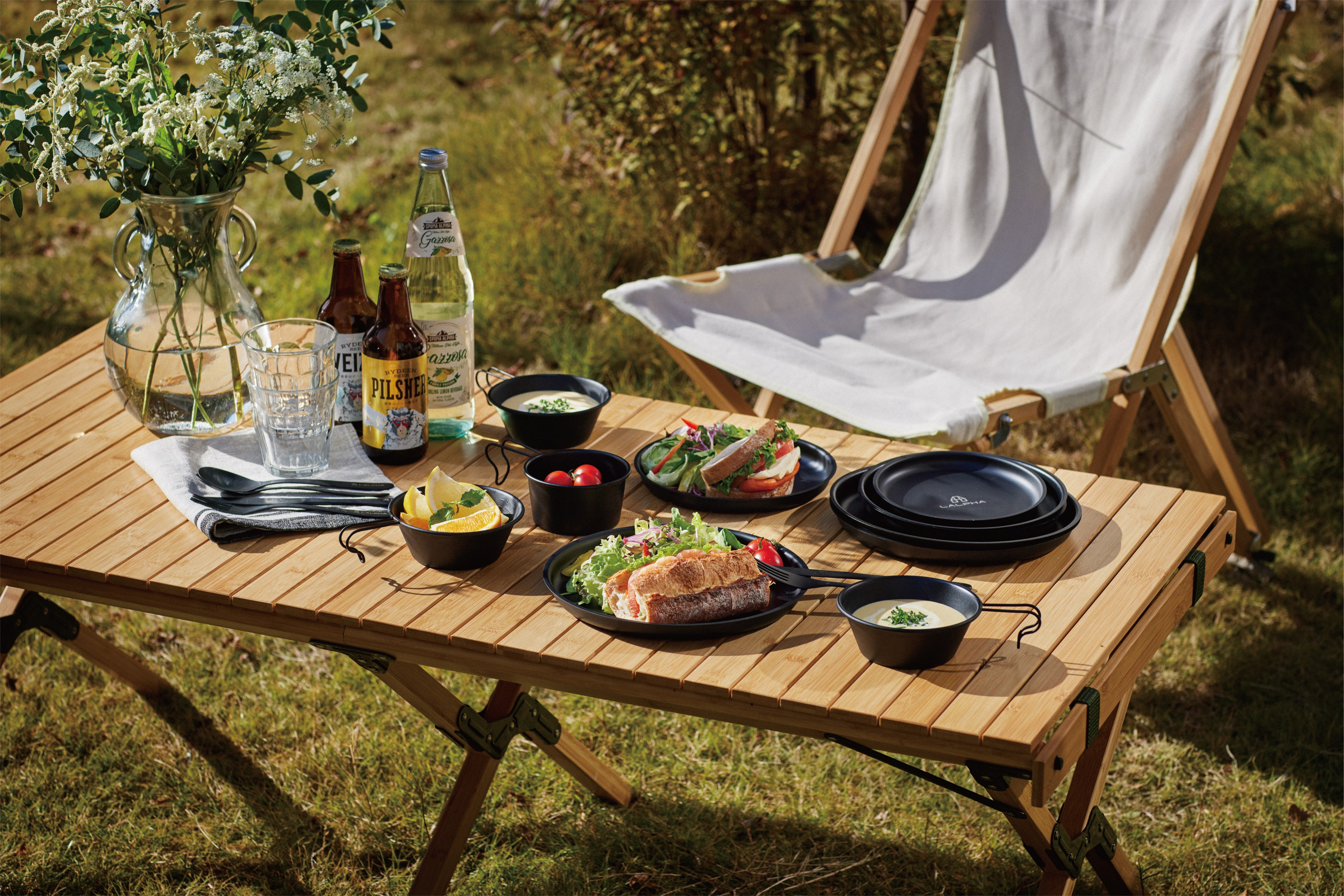 折り畳み式 後ろが開く耐荷重200kg 極太タイヤのアウトドアキャリーワゴン テーブルSET【1462548】