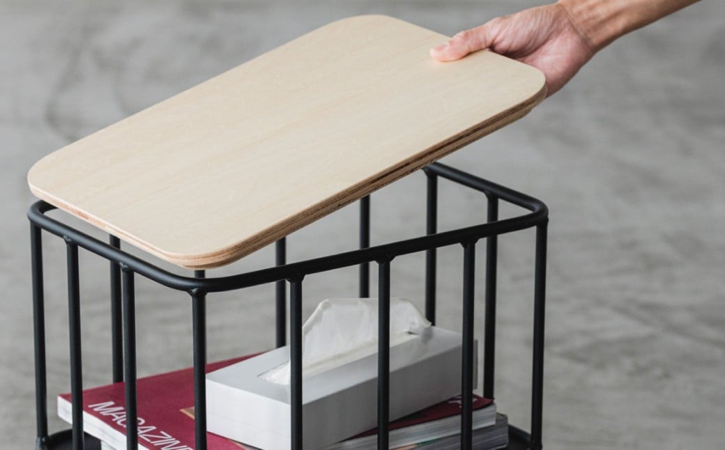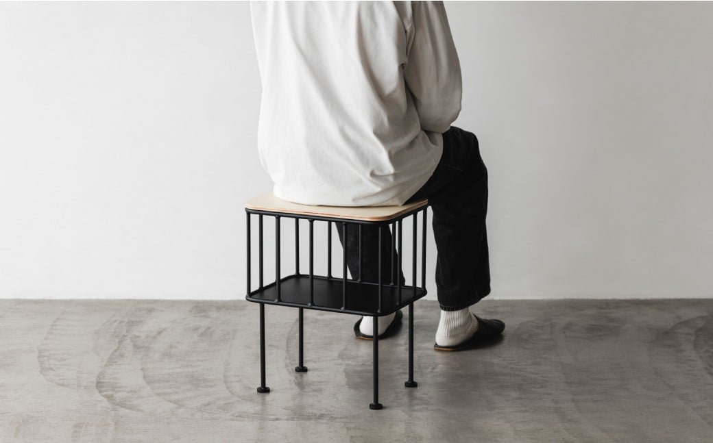 スツールやサイドテーブルになる小さな鉄製家具 POCHI
