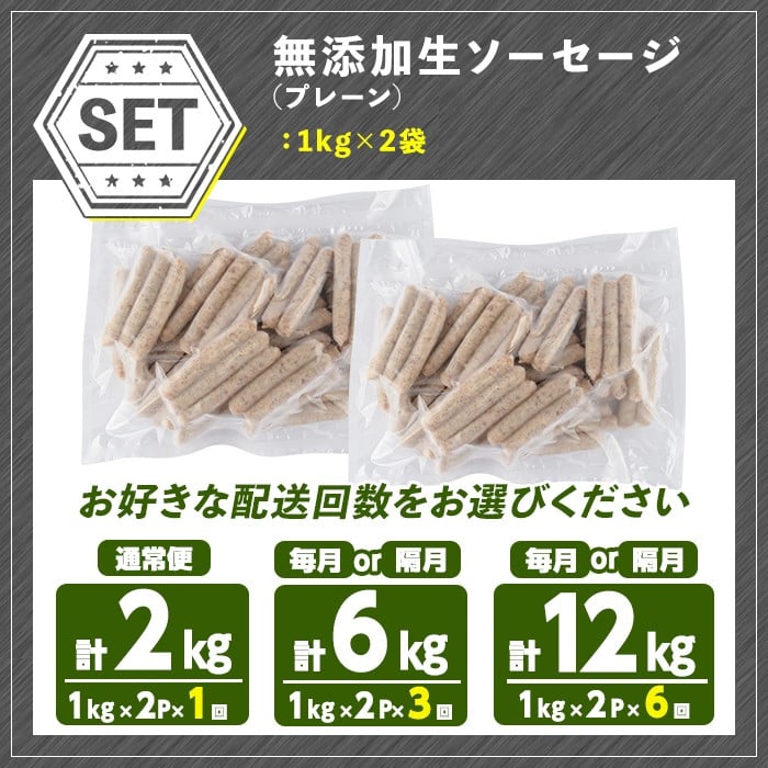 <訳あり・業務用><お届け回数・容量が選べる!>無添加生ソーセージ(計2kg・1kg×2P) 定期便 ソーセージ 肉 豚肉 鶏肉 惣菜 おかず おつまみ 訳アリ 簡易包装 国産 冷凍 勝負めし【102000901・202000100・200・400・500】【サンセイ 安心院ソーセージ】