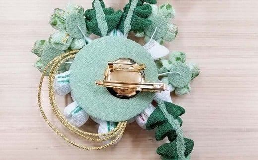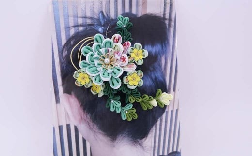 - つまみ細工の髪飾り グリーン系(クリップ)縦16×横14cm W-ww-104A