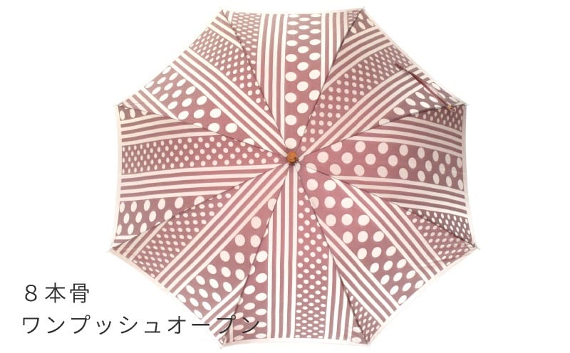 【槙田商店】晴雨兼用長傘 Kirie ドットとストライプ アンティークボルドー 傘 かさ 雨具 高級 晴雨 兼用 UV 日焼け ギフト ファッション 日傘 プレゼント 化粧箱 老舗
