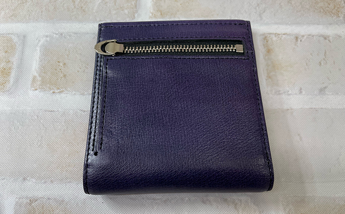 メンズ財布の定番!本革二つ折り財布(ネイビー)たつの市産牛革 シュリンク型押し×オイルレザー