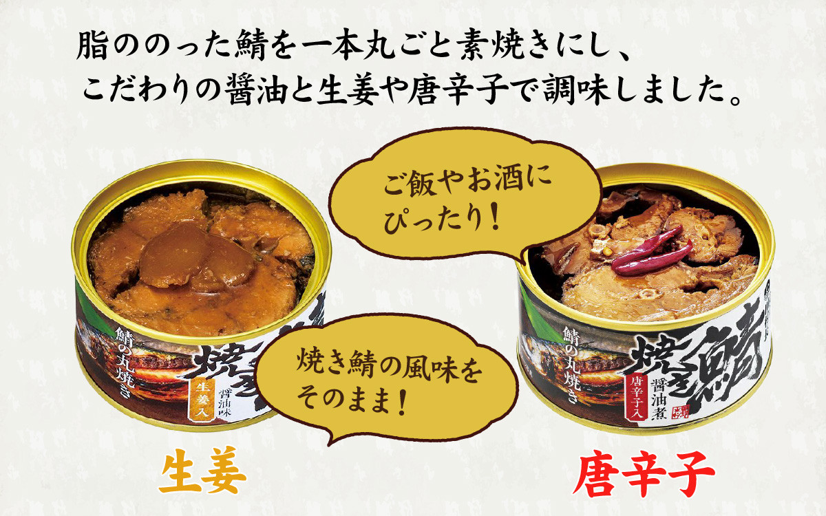 - 焼き鯖の缶詰詰合せ 3缶入(生姜入×2缶・唐辛子入×1缶) 小浜市 / 田村長 [BFBV004]