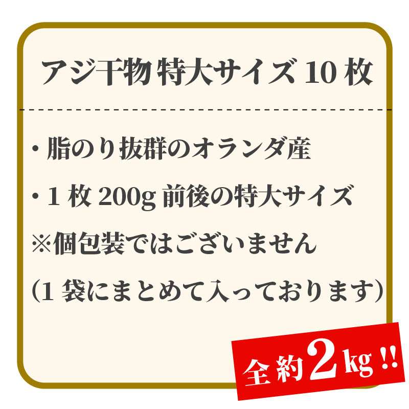 - アジ 干物 特大 約2kg 10枚 1枚 あたり 200g前後 あじ 開き 鯵 あじ ひもの アジ 晩酌 アジ おつまみ 天然 あじ 簡単 お手軽 魚 魚介 干し アジ 干しもの 干し魚 美味しい 極上 コスパ ランキング 人気 静岡 沼津 静岡県