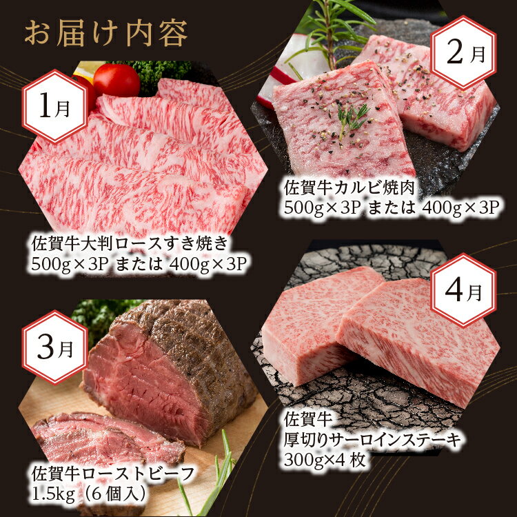 - 【ふるさと納税】【毎月お届け 肉の定期便】j-2 / j-17 極選 佐賀牛 全12回 月替り 選べる内容量 計15.3kg / 17.4kg お届け 食べ比べ サーロイン ハンバーグ ヒレ ステーキ カルビ 焼肉 肩ロース しゃぶしゃぶ すき焼き ローストビーフ 定期便 j-2