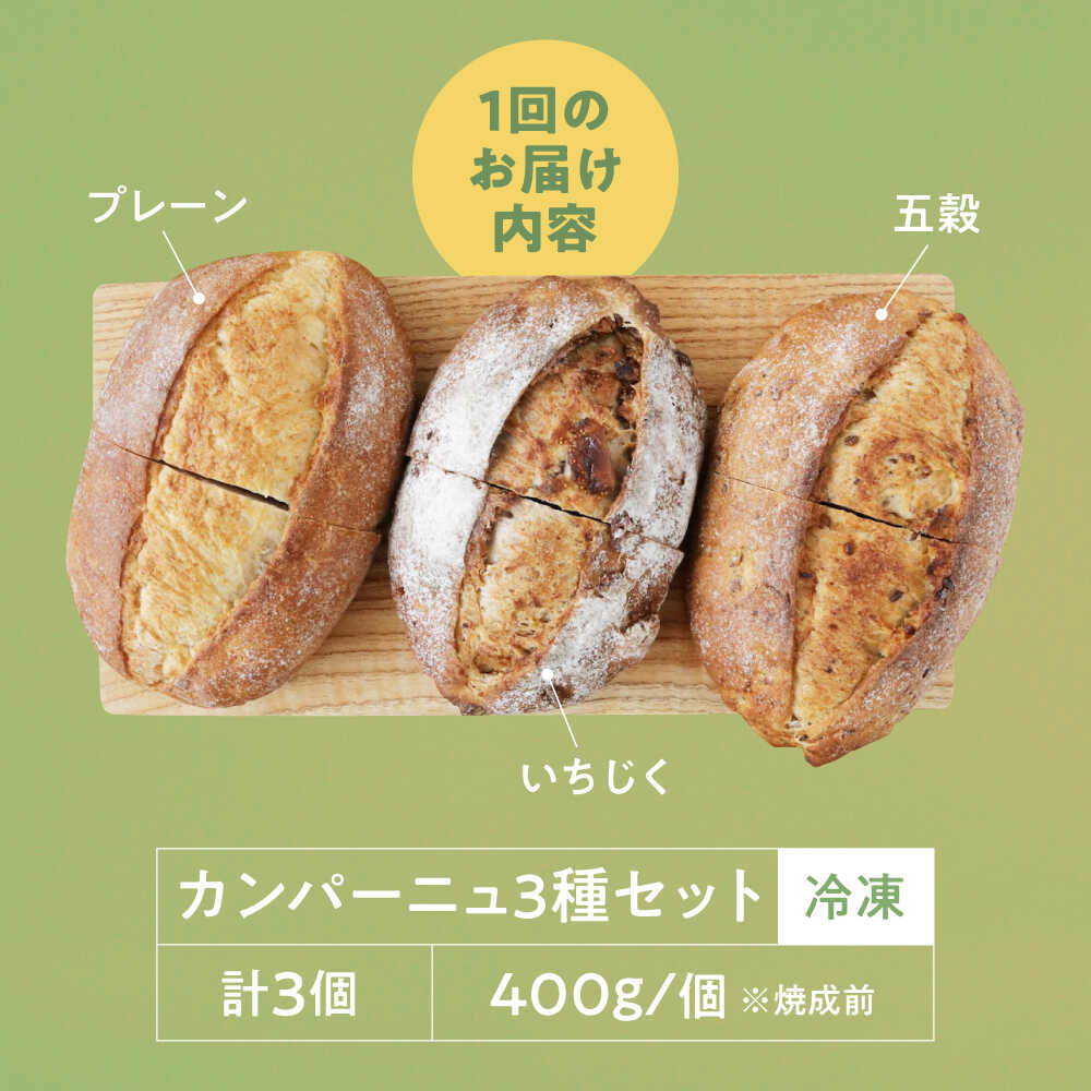 - 【ふるさと納税】カンパーニュ 【全12回定期便】【冷凍】3種セット (プレーン・いちじく・五穀) おすすめ 人気 定期便 パン 詰め合わせ 食べ比べ 天然酵母 ベーカリー ハードパン 愛媛県大洲市/株式会社アライ 冷凍パン ハードパン 食事パン 朝食 ベーカリー 冷凍[AGAY053]