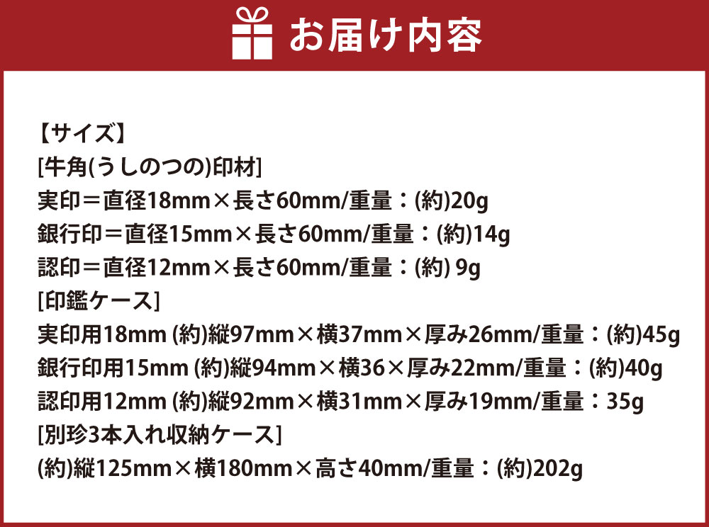 - 牛角(うしのつの)印鑑 3本セット(N) 【 日用品 雑貨 山梨文字 希少 セット 印鑑 芯持ち材 銀行印 認印 実印 個人用 】
