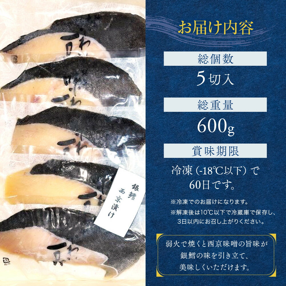 - 【ふるさと納税】味わい一品 冷凍銀鱈西京漬け 5切入 | 銀鱈 銀だら たら ギンダラ 西京漬け 和風 惣菜 魚貝類 和食 おかず 加工食品 焼き魚 和食 さかな 酒のあて 酒の肴 魚 お魚 つまみ お取り寄せ お歳暮 食品 人気 おすすめ 送料無料