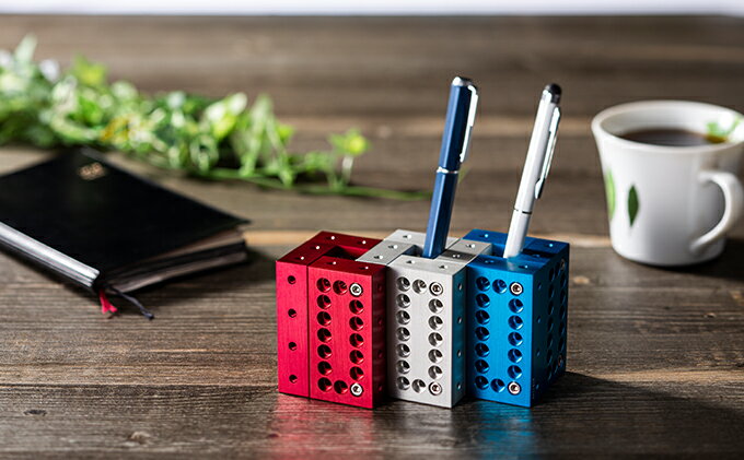- 【ふるさと納税】町工場職人がつくるアルミ製ブロック【3色ペンスタンド組立てセット】 雑貨・日用品・民芸品・工芸品