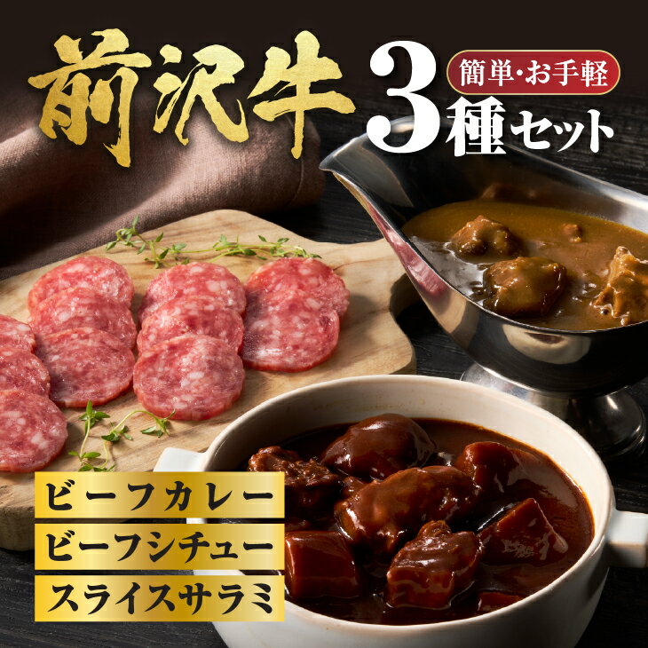 - 【ふるさと納税】 前沢牛 ビーフカレー ビーフシチュー スライスサラミ 各1個 お手軽 セット レトルト 詰め合わせ カレー シチュー サラミ 前沢牛 ブランド牛 牛 肉 おかず グルメ 常備品 一人暮らし [ME015]