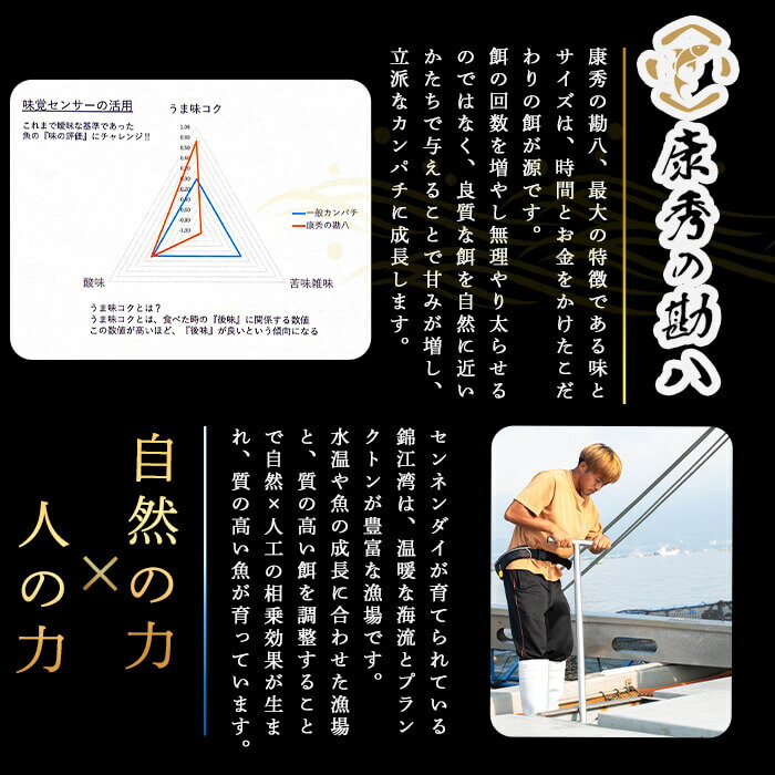 【ふるさと納税】【冷蔵or冷凍が選べる!】康秀の勘八 ロイン4柵+カマ2個(計1.8kg前後) 魚 魚介 海鮮 かんぱち カンパチ 刺身 柵 しゃぶしゃぶ 冷凍 国産 お祝い 鹿児島産 垂水【株式会社康秀】