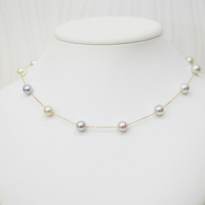 【ふるさと納税】ネックレス あこや真珠 8mm - 8.5mm 選べる 金具 K18YG K18WG K18 アクセサリー ステーションネックレス Y字 2WAY 無調色 ペンダント 真珠 ナチュラル 品質保証書 ジュエリーケース ケース付 贈答用 プレゼント用 お取り寄せ 天草産 熊本県 天草市 送料無料