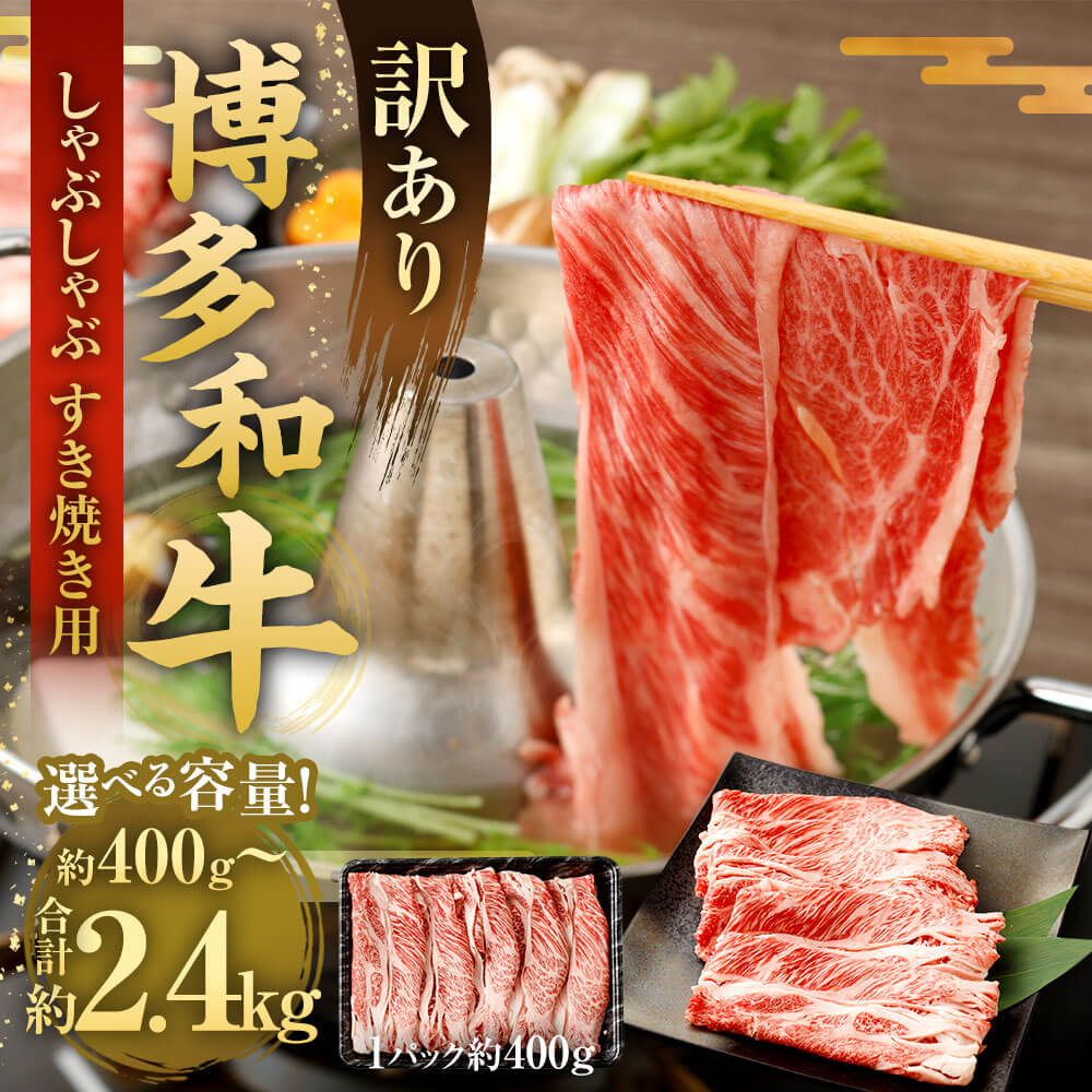 - 【ふるさと納税】<選べる 容量>【訳あり/部位はお任せ】博多和牛 しゃぶしゃぶ すき焼き用 肩ロース肉 肩バラ肉 モモ肉 約400g~約2.4kg 1パック約400g 黒毛和牛 福岡県産 九州産 国産 国産牛 すきやき 牛肉 肉 冷凍 福岡県 大任町 送料無料
