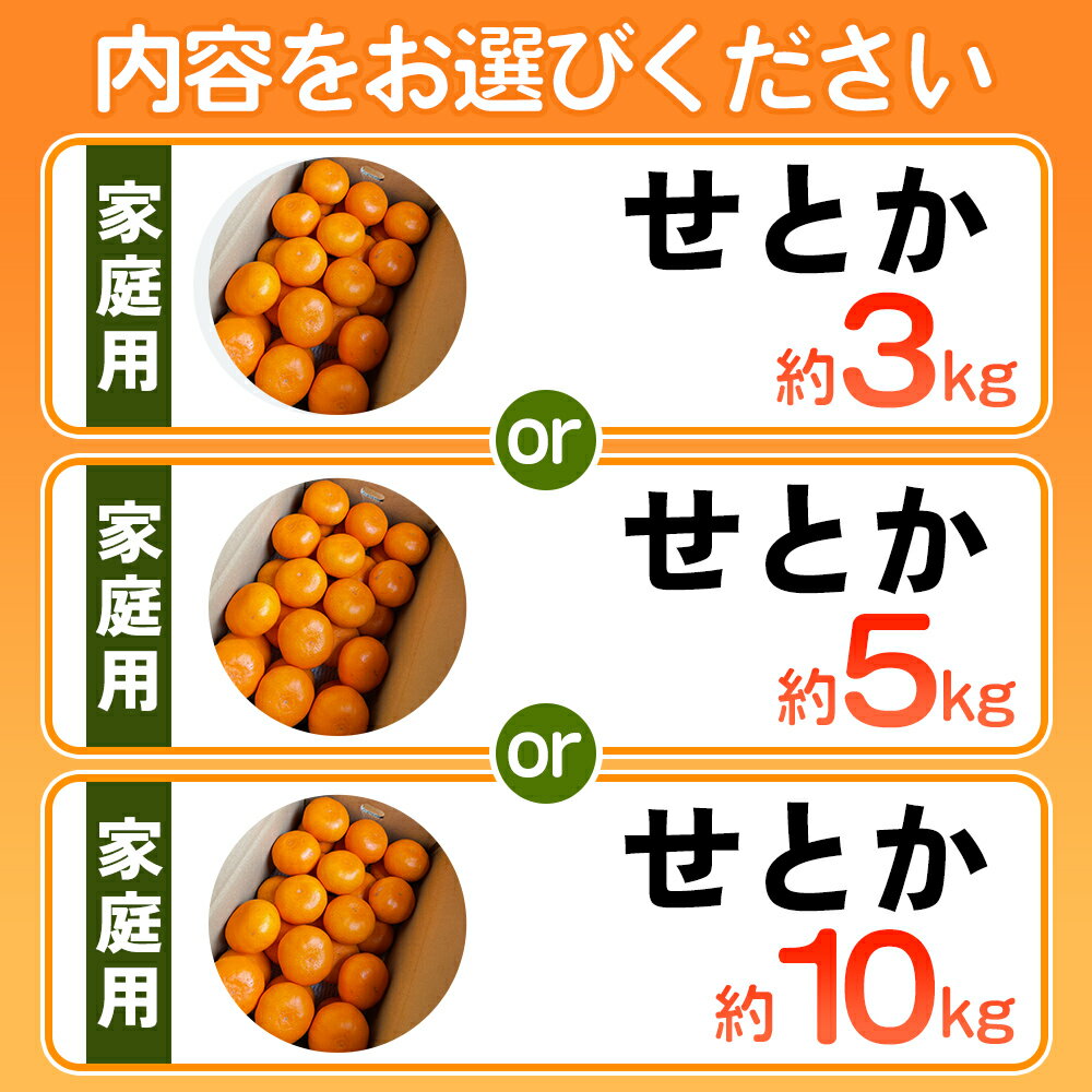 - 【ふるさと納税】<せとか 家庭用 約3kg/5kg/10kg> 訳あり わけあり 自宅用 果物 フルーツ みかん ミカン 蜜柑 オレンジ 柑橘 セトカ 選べる ジューシー サイズ不揃い 食べて応援 特産品 柑橘園柴田 愛媛県 西予市【常温】『2026年2月下旬~3月中旬迄に順次出荷予定』