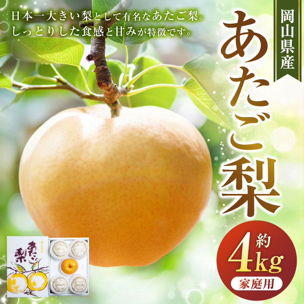 【ふるさと納税】【2025年発送 先行受付 / 2026先行予約】梨 あたご梨 岡山名産 約4kg 3〜6玉 《11月下旬-12月末頃出荷予定》日本一大きな梨 お歳暮 ギフト 岡山県 備前市