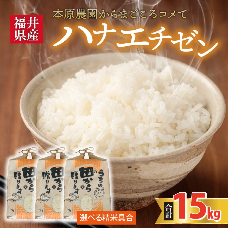 【ふるさと納税】【先行予約】【令和8年産・新米】【白米・玄米選択可】 ハナエチゼン15kg(5kg×3袋) 〜本原農園からまごころコメて〜 【2026年9月上旬以降発送予定】/ 白米 玄米 こめ