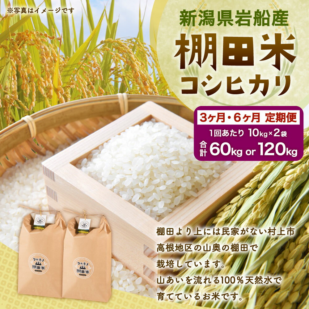 - 【ふるさと納税】【令和7年産米】【定期便】【お届け回数が選べる】新潟県岩船産 棚田米 コシヒカリ 1回あたり20kg 3回 もしくは 6回 米 精米 白米 ご飯 ごはん 村上市 E4012 F4009
