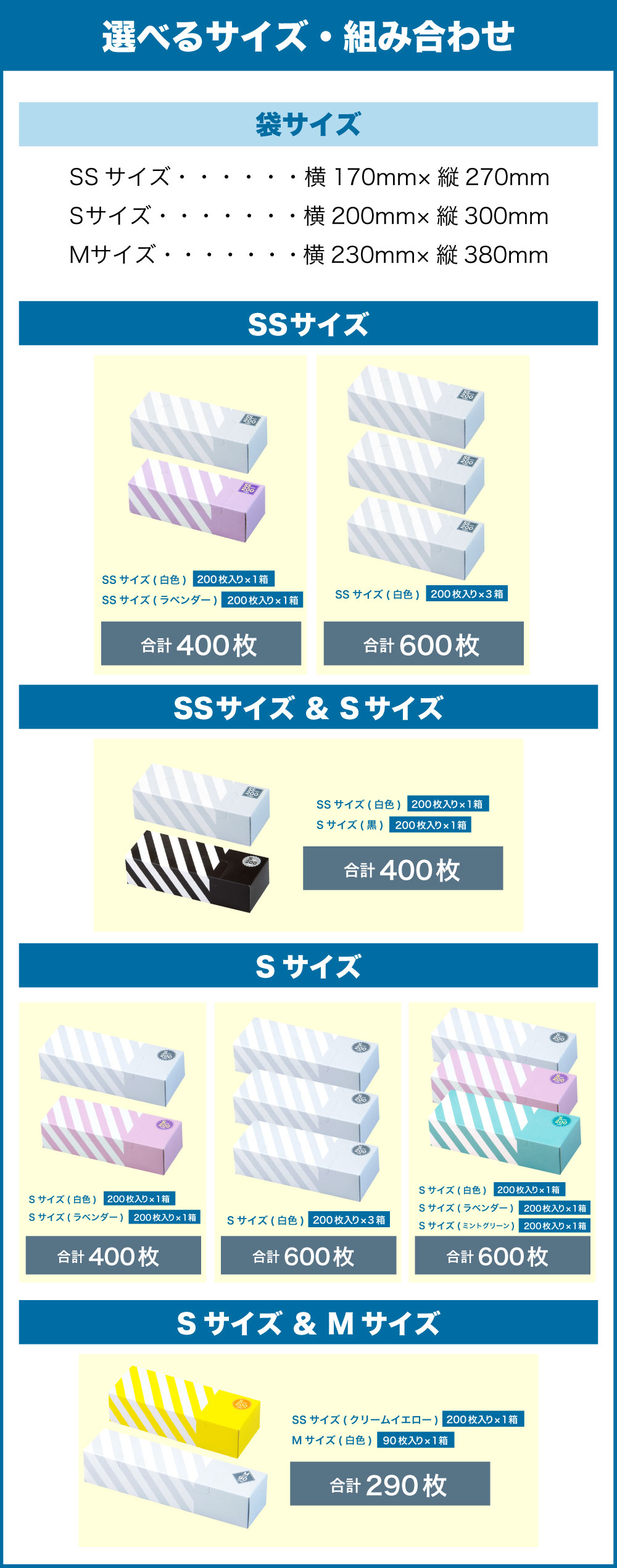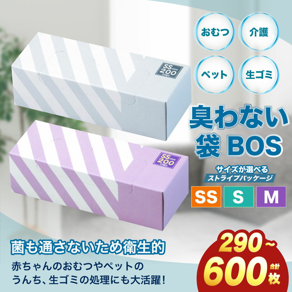 【ふるさと納税】【サイズ・組み合わせが選べる】臭わない袋BOS ストライプパッケージ SS~M 白/ラベンダー/黒/ミントグリーン/クリームイエロー 合計290枚~600枚 | ゴミ袋 防臭 生ゴミ ビニール袋 赤ちゃん おむつ ペット 防臭袋 セット 小樽市 北海道 送料無料