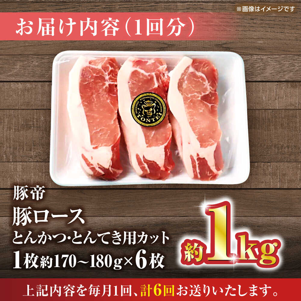 - 【ふるさと納税】【全6回定期便】豚帝 ロースとんかつ・とんてき用 カット 約1kg(1枚約170〜180g×6枚)【KRAZY MEAT(小田畜産)】[ZCP164]