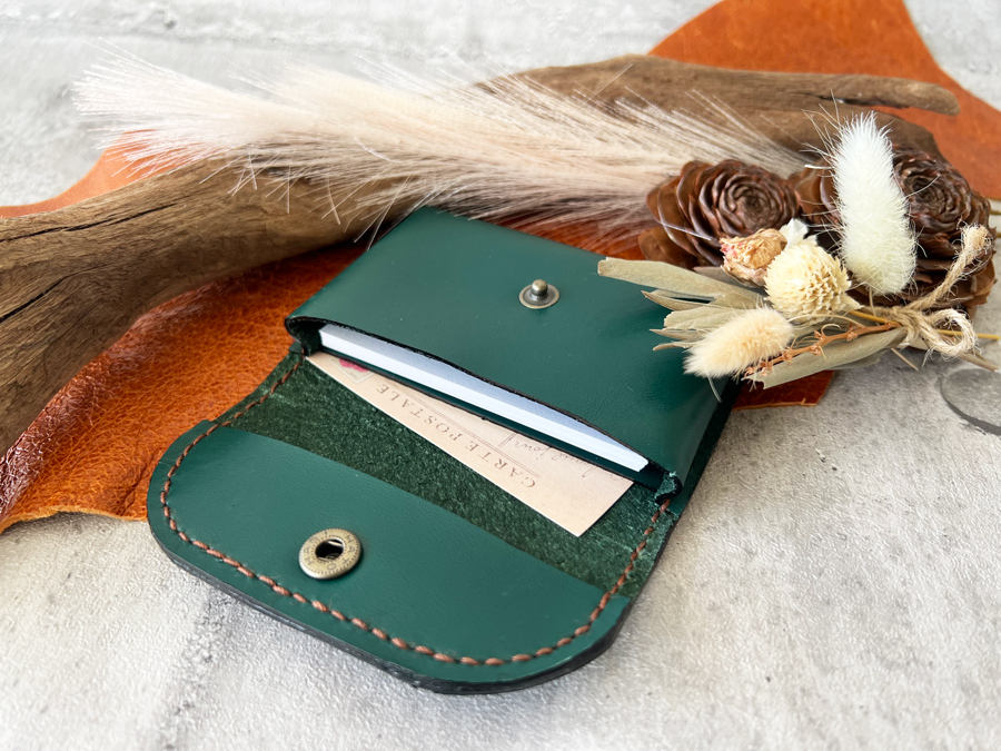 - レザー3点セット グリーン (ネームフォルダー,ペンフォルダー,カードケース)|名刺入れ 文房用品 事務用品 ビジネス 手作り [0186]