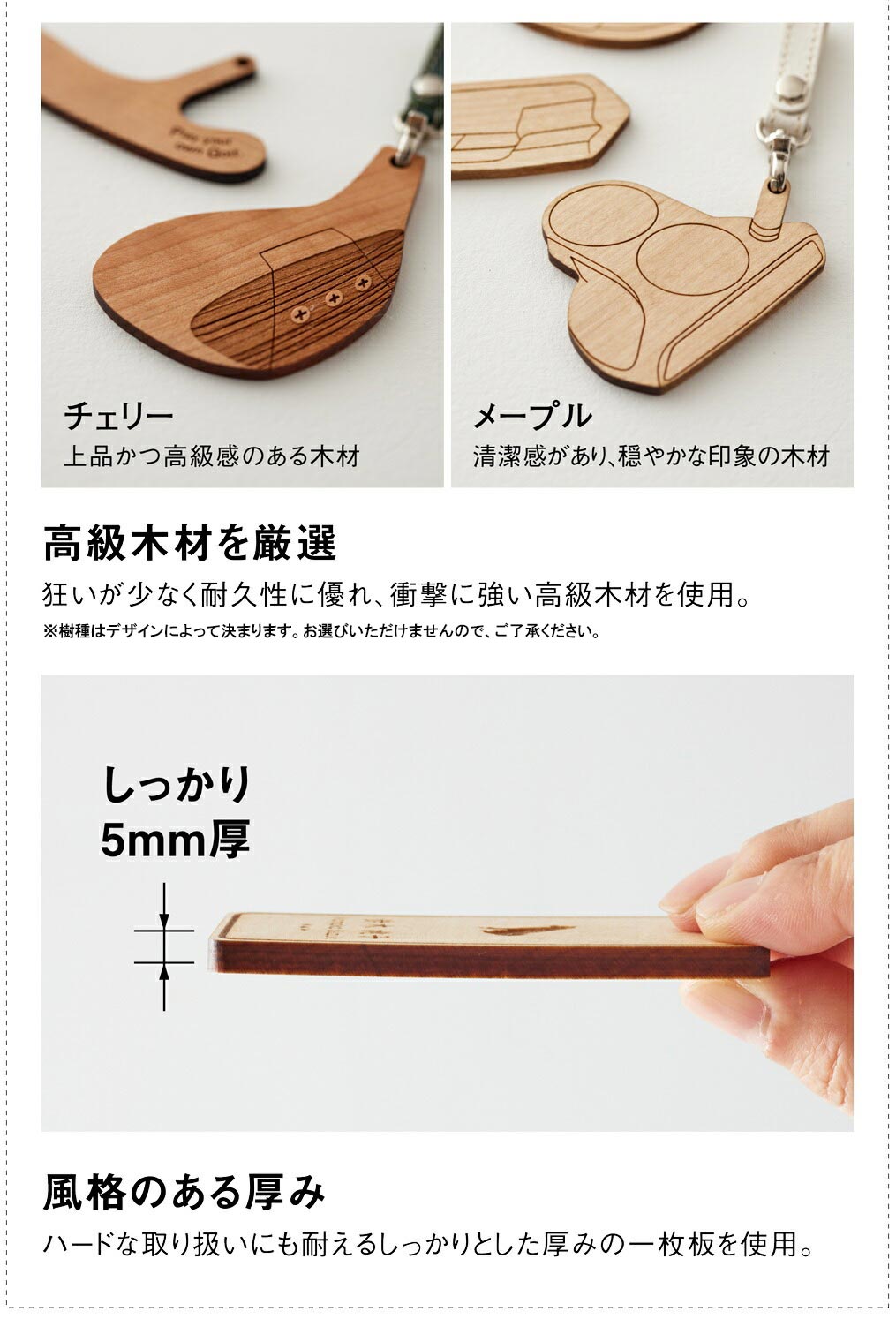 ゴルフ ネームプレート 木製 両面デザイン 本革ストラップベルト 刻印 名入れ (#5:マレット型パター)【四国加工】