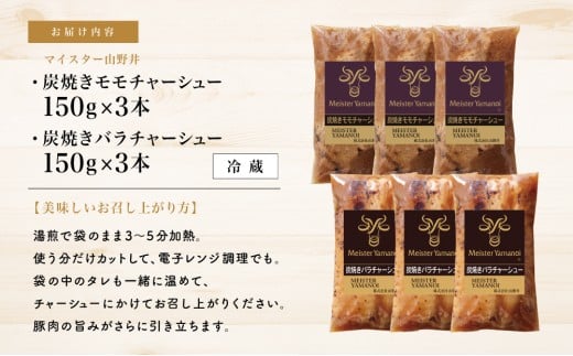 - 【年内お届け】マイスター山野井 モモ&バラチャーシュー 食べ比べセット 計6本 900g ★まだ間に合う!年内お届け★ 焼豚 焼き豚 オードブル 肉 豚肉 バラ モモ 惣菜 おかず 家庭用 炭火 ラーメン 丼 お取り寄せ セット 鹿児島 グルメ 食べ比べ 冷蔵 南さつま市
