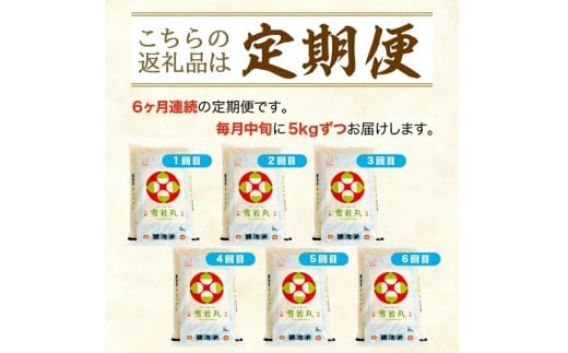 【6回定期便】無洗米 雪若丸 5kg×6回(計30kg) TO SM0046