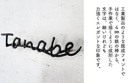 - 【職人の手仕事】筆記体のロートアイアン表札8~10文字まで|鍛鉄×ネームサイン(壁付け) E-ms-A35A