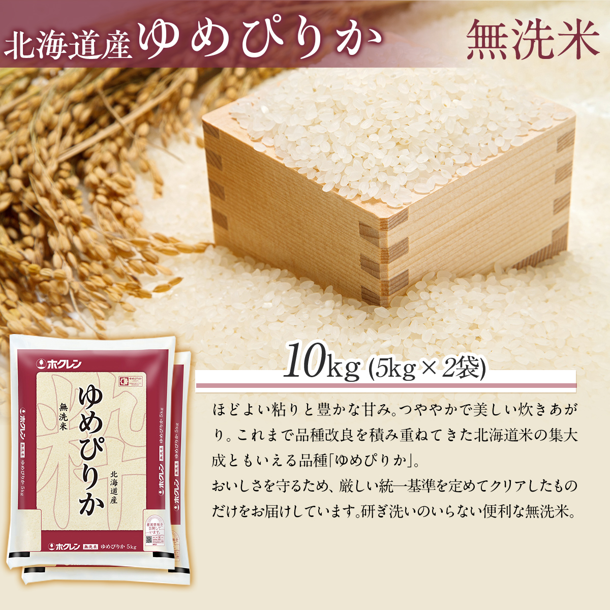 - 【令和7年産】(無洗米10kg)ホクレンゆめぴりか(無洗米5kg×2袋) MKWAI044
