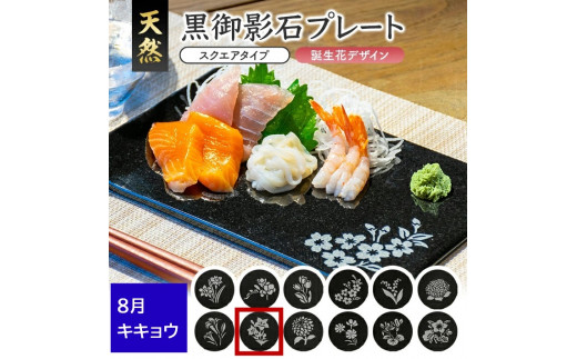 - 天然黒御影石 スクエアプレート 1枚 【誕生花彫刻(8月キキョウ)】 SE0263