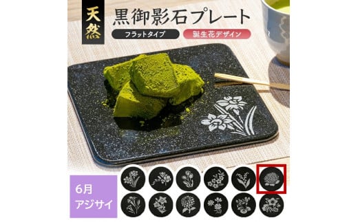 - 天然黒御影石 フラットプレート 1枚 【誕生花彫刻(6月アジサイ)】 SE0274
