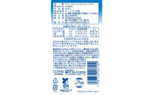 雪アルプス天然水 500ml×24本 ナチュラルミネラルウォーター【1681323】