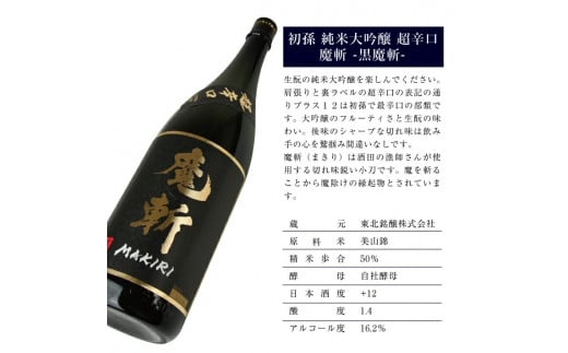 「初孫 純米大吟醸超辛口 黒魔斬」「楯野川 純米大吟醸 凌冴(りょうが)+10」計2本(各1800ml×1本) 【き、つけでのセット】 SD0197