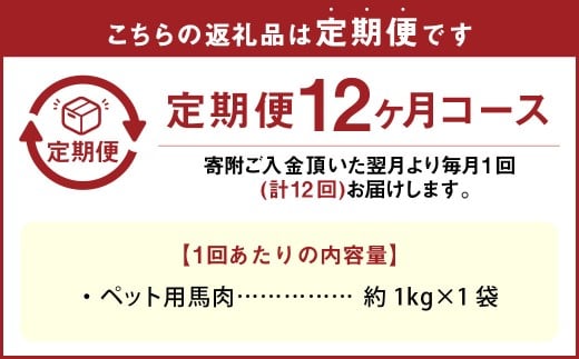 【12回定期便】 ペット用 馬肉 約1kg(1袋)×12回 計約12kg 馬 お肉 肉 ペットフード ドッグフード キャットフード おやつ ごはん ご飯 餌 えさ エサ 冷凍