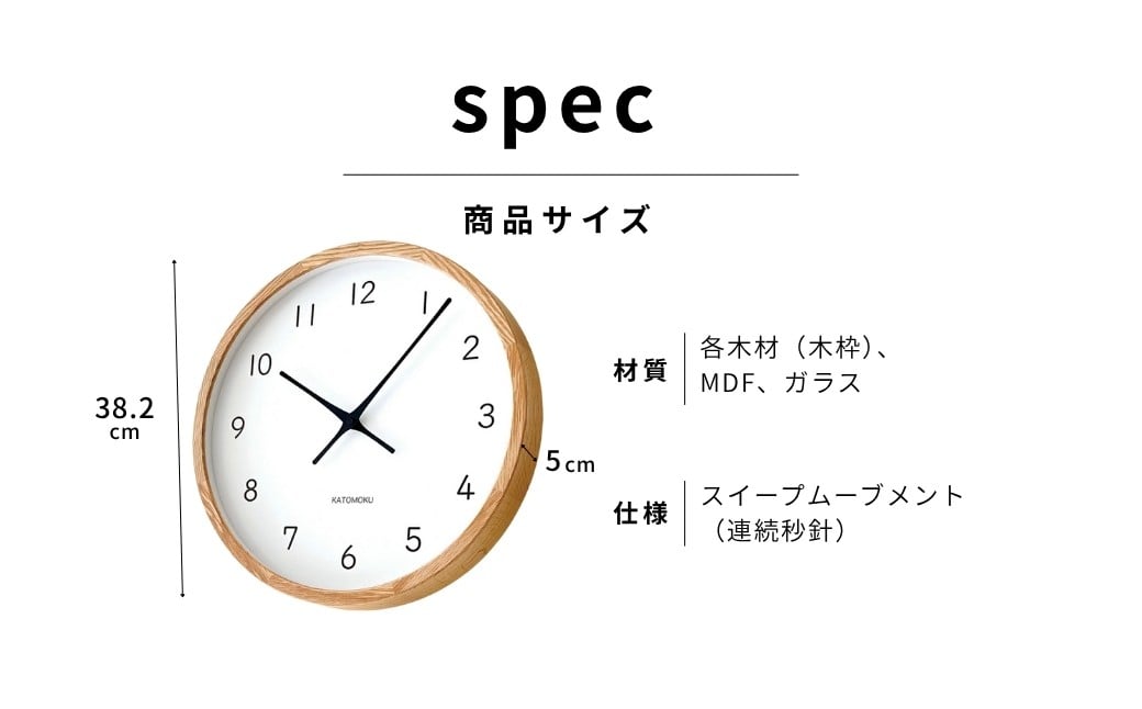- 【C-66】KATOMOKU Muku clock km-139 木製掛け時計 インテリア 寝具 収納 置き時計 掛け時計 掛け時計