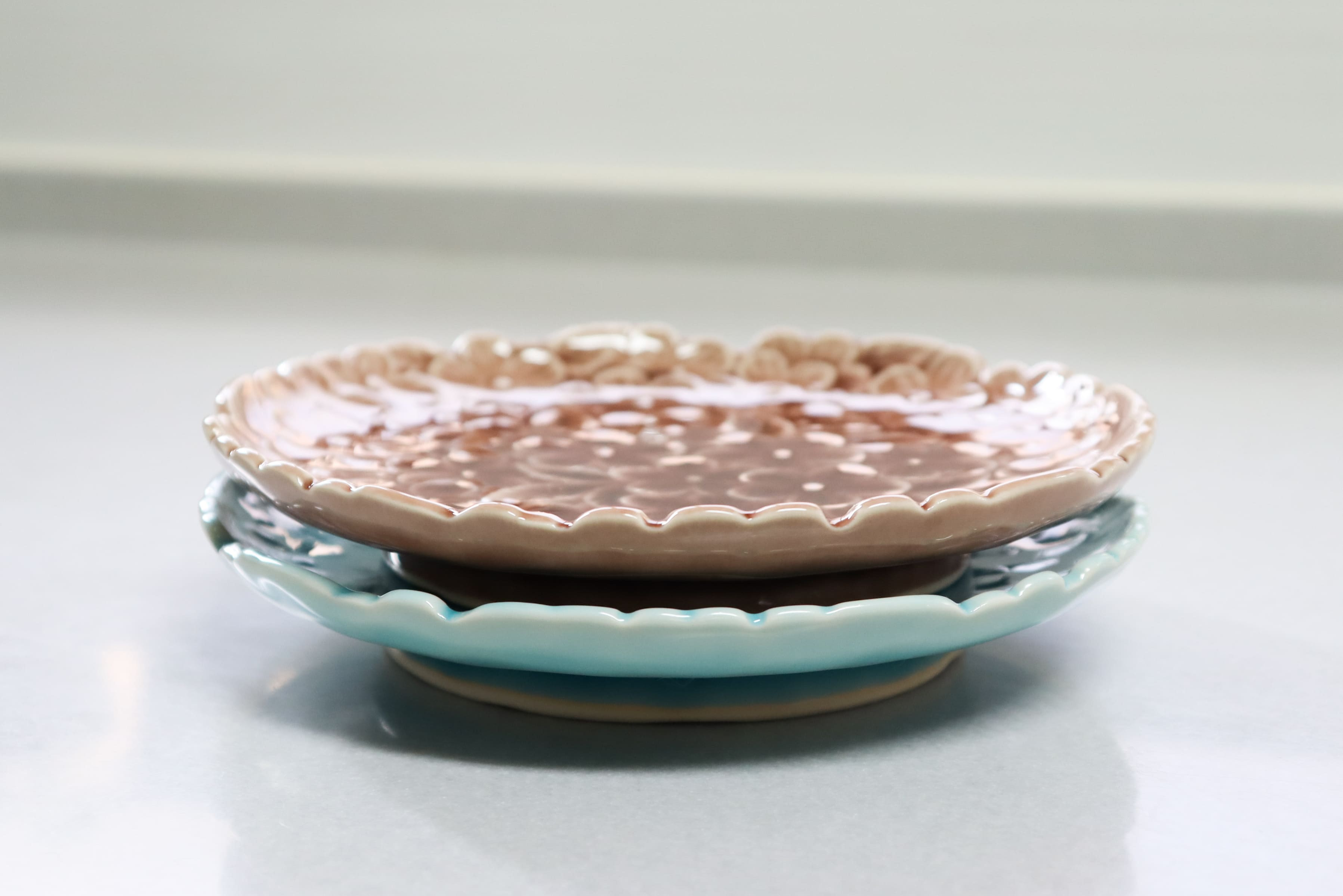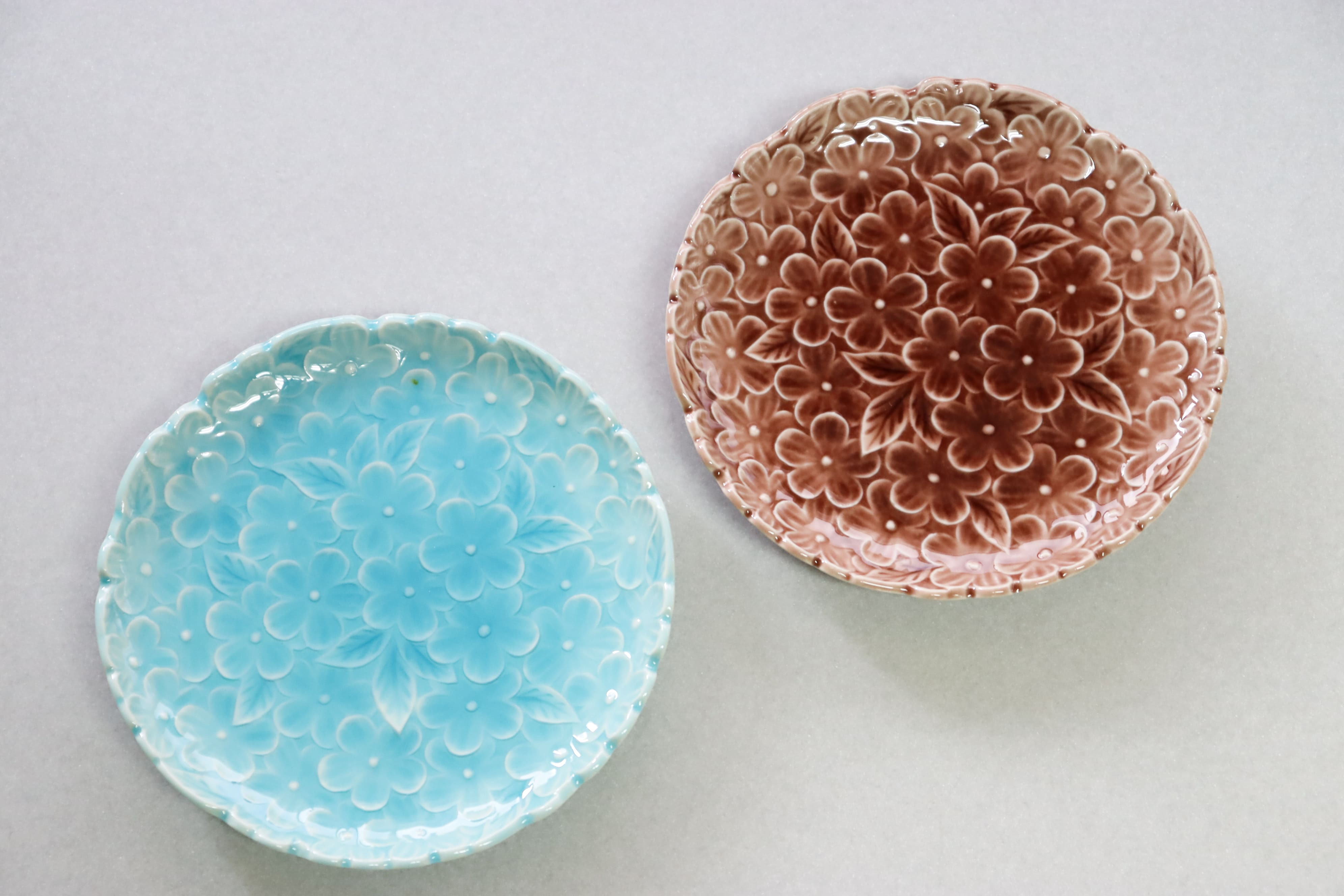 有田焼 花詰め彫 色釉銘々皿 ペアセット 大慶 皿 食器 A24-46