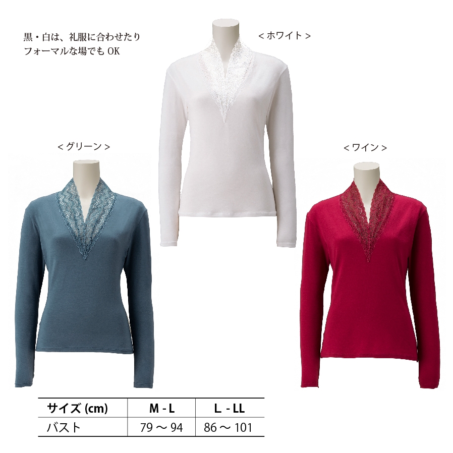 - カットソー インナー 長袖 Vネック 1着 ホワイト 選べる サイズ M-L L-LL トップス 衣類 肌着 レディース ジャケット イン 白 白色 礼服 仕事着 オフィス カジュアル エレガント フォーマル 母の日ギフト 母の日 ビレーヌ 美・REINE 滋賀 彦根