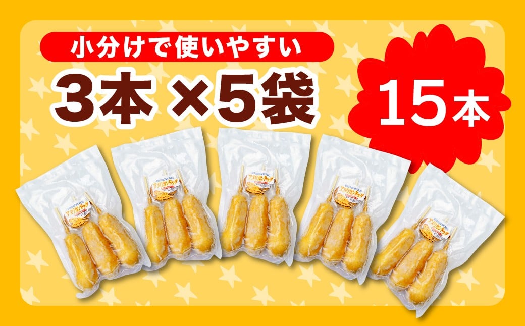 - アメリカンドッグ 15本セット (3本×5袋) 冷凍 | おやつ 定番 スナック おなじみ なつかしい 子ども アメリカンドッグ 軽食 レンチン 小腹満たし グルメ 遊園地 フード イベント 屋台メニュー 食べやすい 冷凍食品 お取り寄せ 簡単調理 ゼンフーズ 群馬県 前橋市