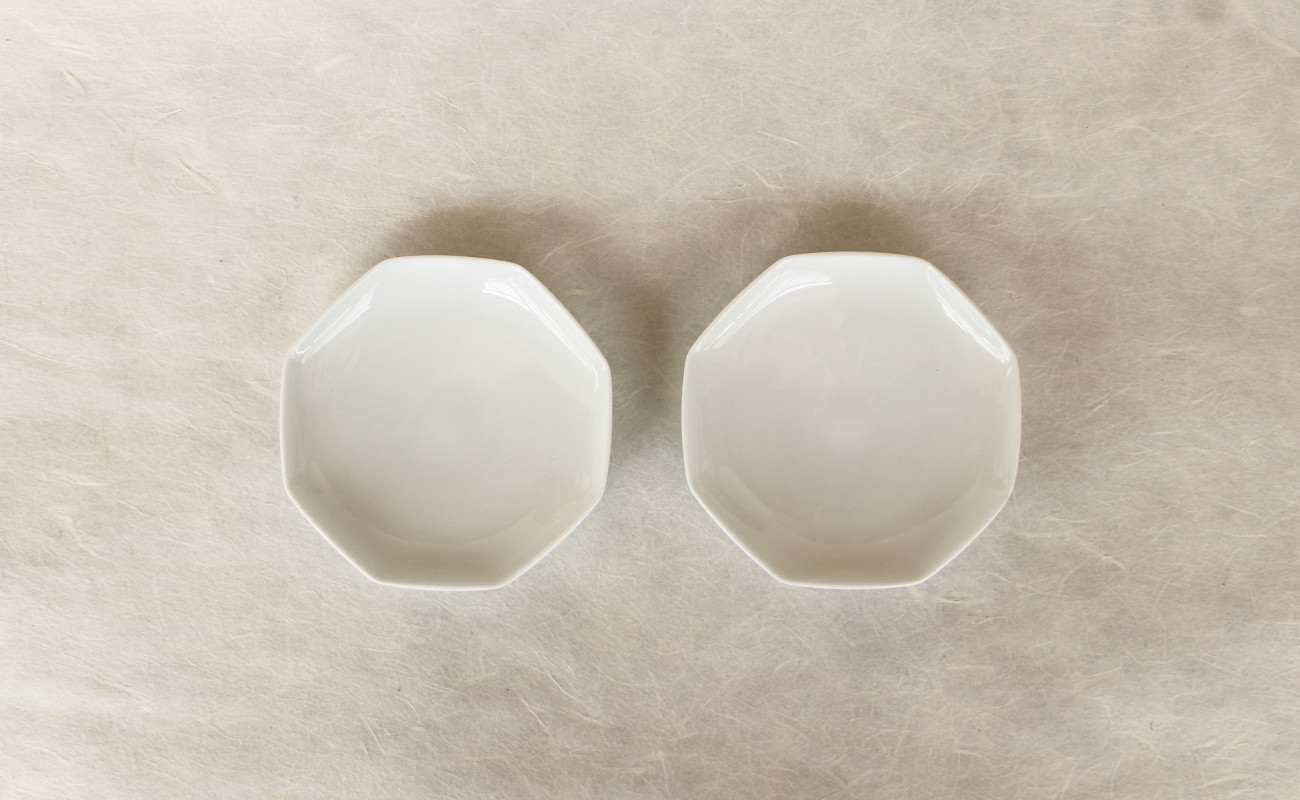 - 伝統工芸士 白須美紀子作【白磁 八角小皿二枚組】有田焼 A24-18