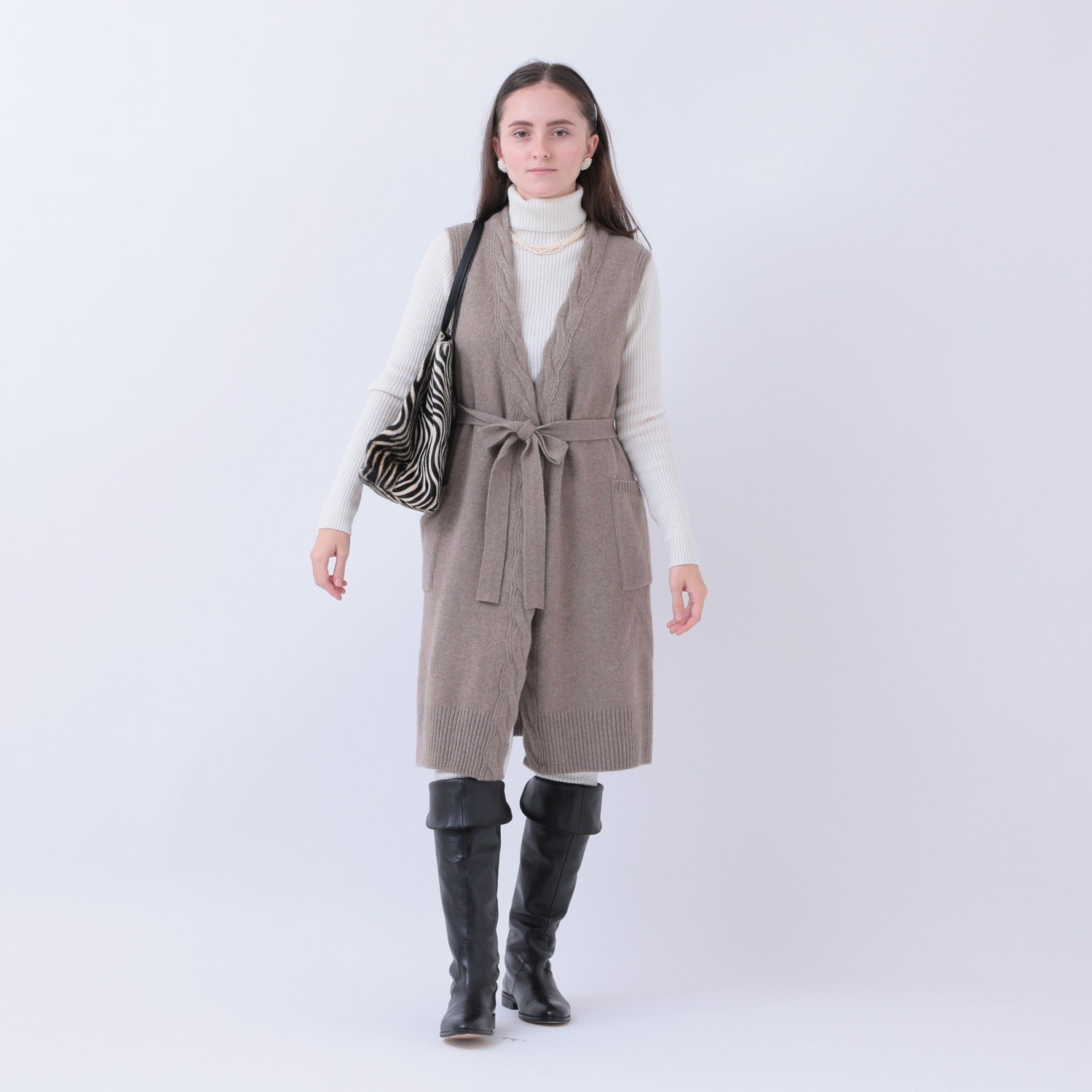 ルーエンローズ カシミヤ 部分ケーブル編みロングジレ(ブラウン) ニット ファッション おしゃれ 日本製 秋 冬 プレゼント ギフト RU2311-19