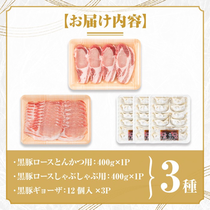 - B06001 鹿児島県産黒豚ロース&餃子セット 鹿児島県 国産 九州産 黒豚 豚肉 ポーク ロース とんかつ しゃぶしゃぶ 餃子 ギョーザ ぎょうざ バラエティ セット 詰め合わせ 鹿児島 ギフト 贈答【あかつき産業株式会社】